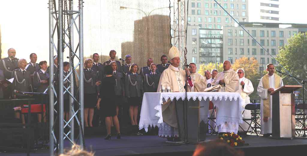 – Jeśli chcemy budować przyszłość, trzeba odkłamać przeszłość – mówił w homilii biskup Guzdek. Podkreślił, że przez wiele lat uczniom w szkole przypominano prawdę o 1 wrześniu, a omijano informacje o agresji z 17 września i o tajnym porozumieniu Ribbentrop-Mołotow. – Surowo zabronione były słowa „Katyń, Ostaszków, Bykownia, Kołyma – mówił. – Odrzućmy patriotyzm zapomnienia. Poważny rachunek sumienia powinni zrobić ci, którzy przekazywali młodemu pokoleniu zakłamaną historię. Przestrzegał, by nie przechodzić obojętnie wobec tego, co wydarzyło się 75 lat temu. – Trzeba dziękować za wolną Polskę, ślubować, że nie zapomnimy o historii oraz prosić o pokój, dialog i zrozumienie w nadziei, że zostaniemy wysłuchani – zakończył biskup polowy WP.