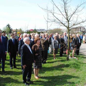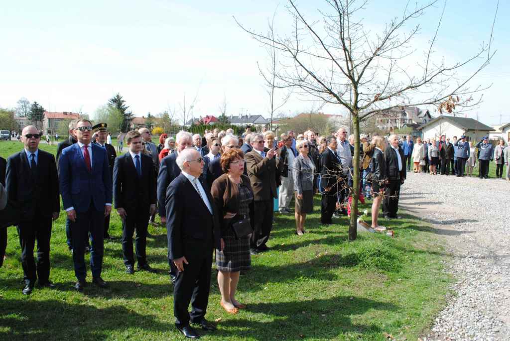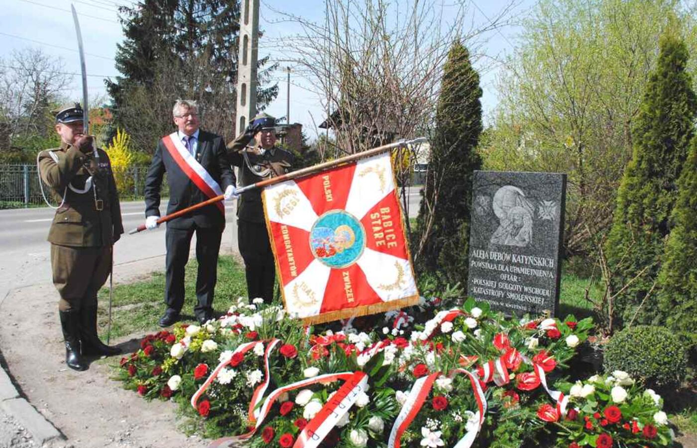 Po mszy św., uczestnicy uroczystości przeszli z kościoła do pobliskiej Alei Dębów Katyńskich, gdzie przed tablicą (kapliczką) Matki Bożej Katyńskiej delegacje samorządowców i instytucji z gmin, z Powiatu Warszawskiego Zachodniego (razem ze starostą Janem Żychlińskim) i Warszawy (z burmistrzem Żoliborza Krzysztofem Buglą) złożyły kwiaty. Nie zabrakło także przedstawicieli parlamentarzystów.