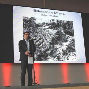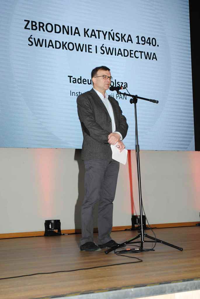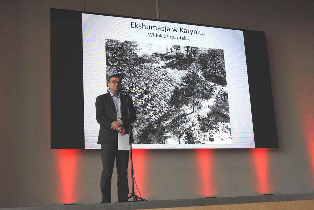 Podczas prelekcji prof. Wolsza przedstawił nieznane szerszej publiczności aspekty zbrodni katyńskiej i mechanizmy niemieckiej propagandy tej tragedii, które uruchomione zostały w 1943 r. Mało kto wie, że Niemcy po odkryciu masowych grobów polskich oficerów przywieźli tam około 30 tys. osób z państw okupowanej Europy. Wśród nich było także wielu żołnierzy Wehrmachtu, którym pokazywano Katyń, jako przestrogę przed poddaniem się sowietom, zagrzewając ich w ten sposób do bardziej ofiarnej walki. Profesor Wolsza omawiał także zagadnienie losu Polaków wizytujących Katyń w 1943 r., którzy zostali tam przywiezieni przez Niemców.