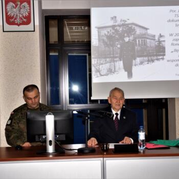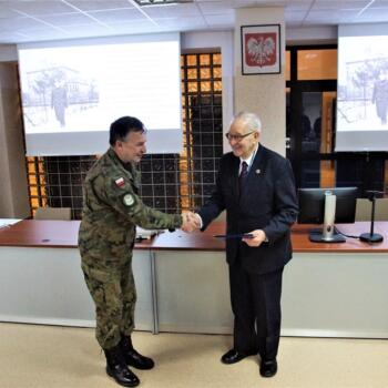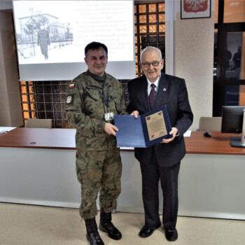 Po wykładzie Komendant CSI-L płk Waldemar Wiśniewski podziękował za wykład i wręczył Jerzemu B. Raczkowi pamiątkową metalową plakietę.
