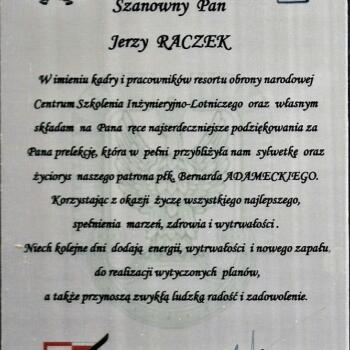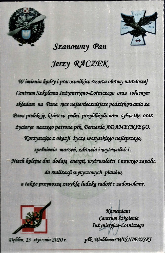 St. sierż. pchor. w st. spocz. Jerzy Bogdan Raczek, członek Zarządu Głównego Związku Oficerów Rezerwy RP w Warszawie, został zaproszony przez płk. Waldemara Wiśniewskiego, Komendanta Centrum Szkolenia Inżynieryjno-Lotniczego w Dęblinie na inaugurację szkolenia kadry CSI-L.
