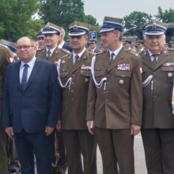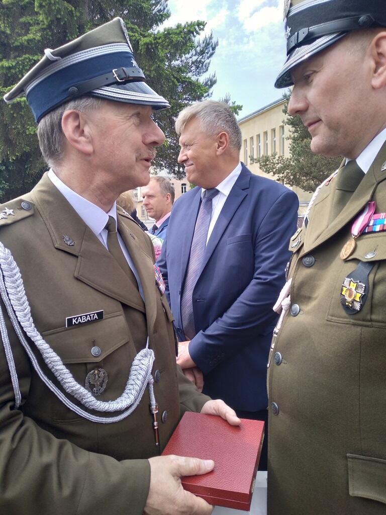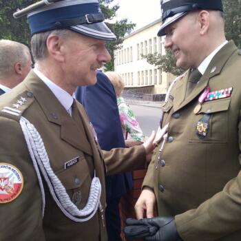 Następnie uhonorowano wyróżniających się żołnierzy jednostki. Płk rez. Alfred Kabata w imieniu Związku Oficerów Rezerwy Rzeczypospolitej Polskiej przekazał płk. Andrzejowi Pietrasowi życzenia oraz wręczył okolicznościową statuetkę.