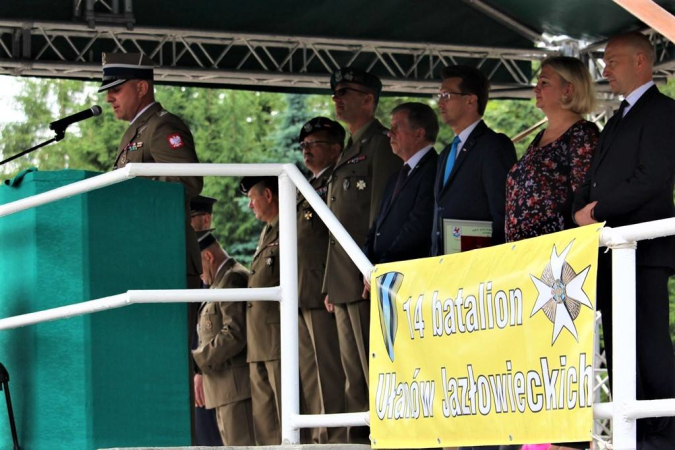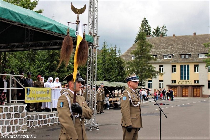 W swoim przemówieniu p.o. dowódcy jednostki – mjr Maciej Paul – przybliżył historię batalionu, jego szczególne zasługi dla Stargardu oraz dokonania szkoleniowe.W dalszej części uroczystości głos zabrał przewodniczący SKON poseł Michał Jach, podkreślając najwyższy poziom umiejętności i profesjonalizm jaki reprezentują stargardzcy żołnierze.Za bardzo dobre wyniki szkoleniowe oraz sumienne wykonywanie obowiązków służbowych podziękował również pełniący obowiązki dowódcy „Dwunastki’ generał Tomasz Piotrowski. „Historia Ułanów Jazłowieckich jest bardzo bogata, ale dokonania dnia obecnego są równie bogate jak to co wydarzyło się w historii. Żołnierze 14 batalionu wielokrotnie brali udział w misjach zagranicznych, przygotowywali Zestaw Sił Odpowiedzi NATO. 14 batalion Ułanów Jazłowieckich bierze udział w prawie wszystkich możliwych ćwiczeniach, gdzie pokazuje kunszt