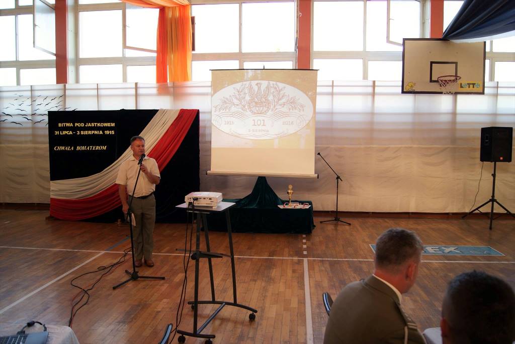 Po złożeniu wieńców pod Pomnikiem Legionistów wszyscy pomaszerowali przy akompaniamencie orkiestry dętej do sali gimnastycznej, aby wziąć udział w drugiej część uroczystości. W pierwszej kolejności odbyła się ceremonia wręczenia medali „Pro Partia”, które przyznawane są za szczególne zasługi w kultywowaniu pamięci o walce o niepodległość Rzeczypospolitej Polskiej. Medale zostały nadane i wręczone przez Szefa Urzędu do Spraw Kombatantów i Osób Represjonowanych – Jana Kasprzaka. W gronie odznaczonych byli m.in.: Teresa Kot – wójt Gminy Jastków, Lubelska Chorągiew ZHP, Piotr Przygodzki – członek ZOR RP. Po ceremonii wręczenia medali zgromadzeni wysłuchali okolicznościowych wystąpień gości.